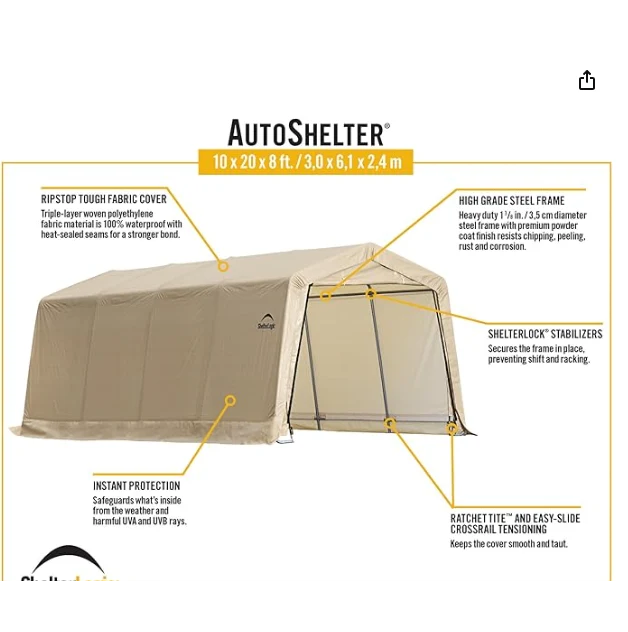 Components inclosos (1) Marc d'acer amb 8 estabilitzadors d'acer a Shelterlock (1) Coberta de gres (1) Panell de porta doble amb cremallera (1) Panell posterior sòlid (4) Instruccions a pas per pas de 15 polzades de 15 polzades