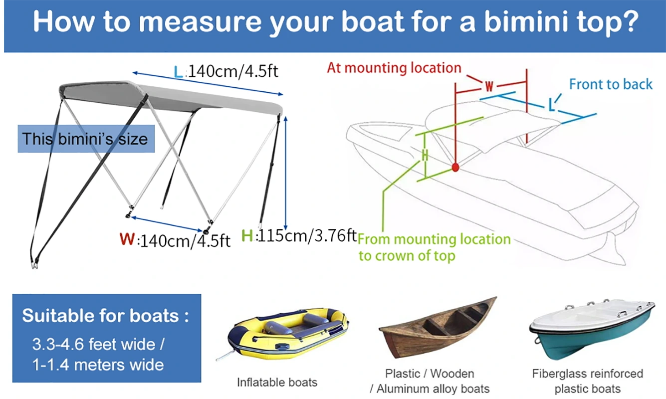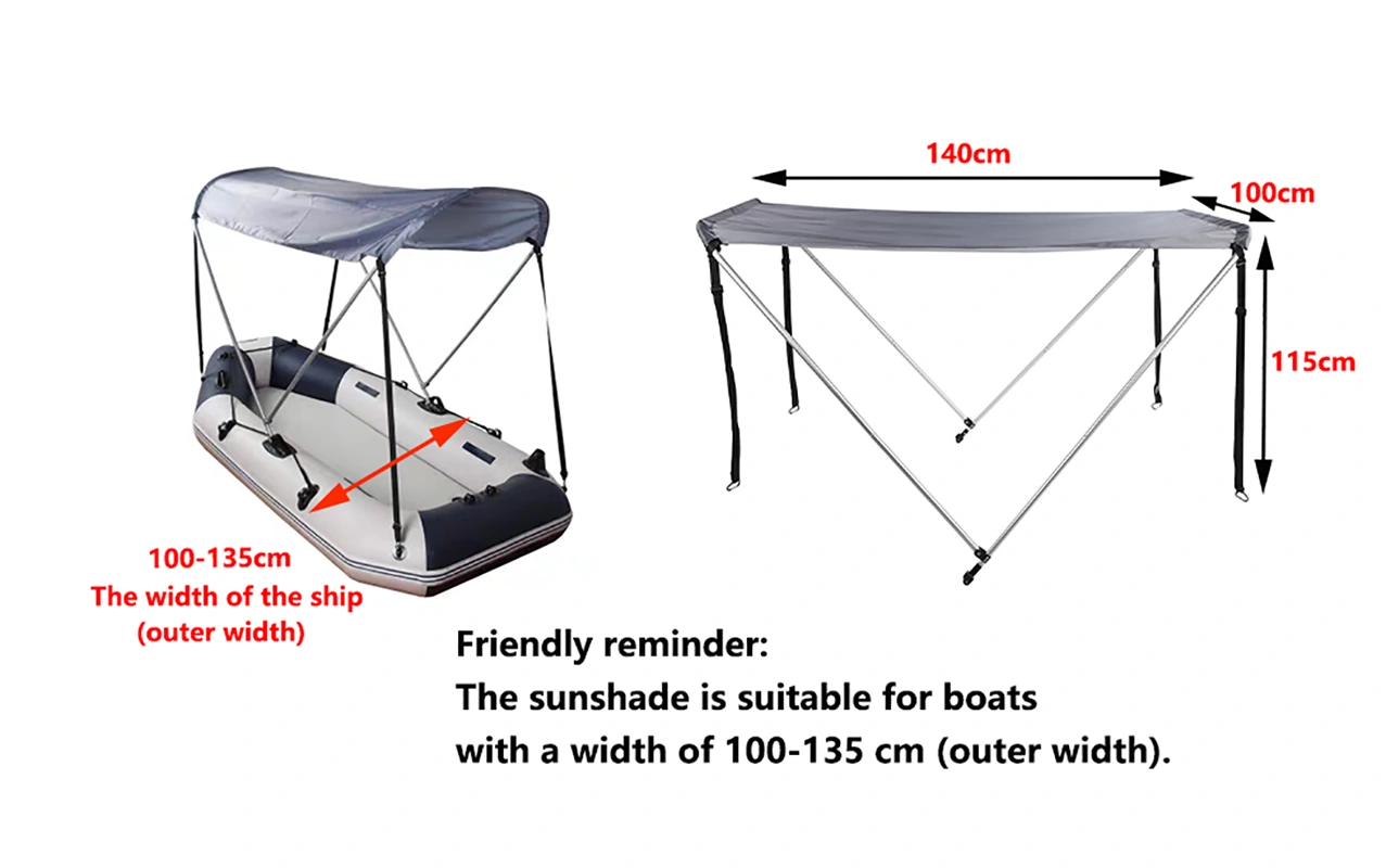 Dosser fabricat amb tela oxford 210D, resistent a la humitat, a la pluja. La part superior Bimini de material marí 210D és un parasol multifuncional per al mar que pot resistir la calor del sol i mantenir-vos a vosaltres i a la vostra família perquè pugueu gaudir d'una experiència segura, còmoda i gratuïta al mar.