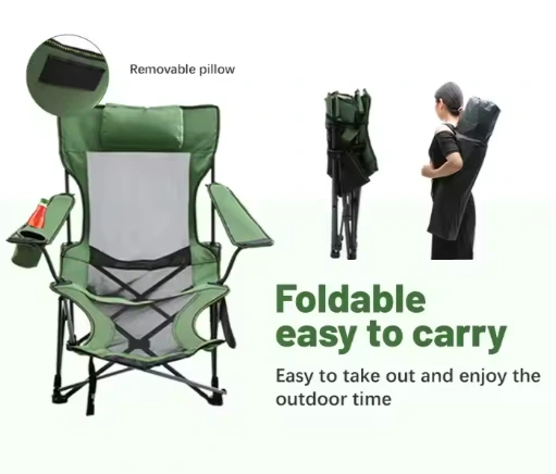 Cadira de platja plegable de motxilla La cadira de la platja de la motxilla compta amb corretges de motxilla regulables que faciliten el transport i el transport a les vostres ubicacions a l'aire lliure preferides. viatjant.