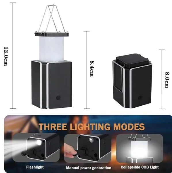 Llum de càmping solar de LED, llums de càmera d’emergència Llanters Generació d’energia de manualitat a mà. Si no teniu un carregador al voltant i no hi ha sol, aquest generador cranejat a mà és perfecte per carregar llum.