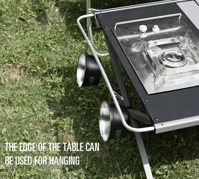 La taula IGT plegable multifunció lleugera, segons les vostres necessitats. Perfecte per acampar, barbacoes, cuina a l'aire lliure i molt més. El costat de la taula es pot utilitzar per penjar plats i estris
