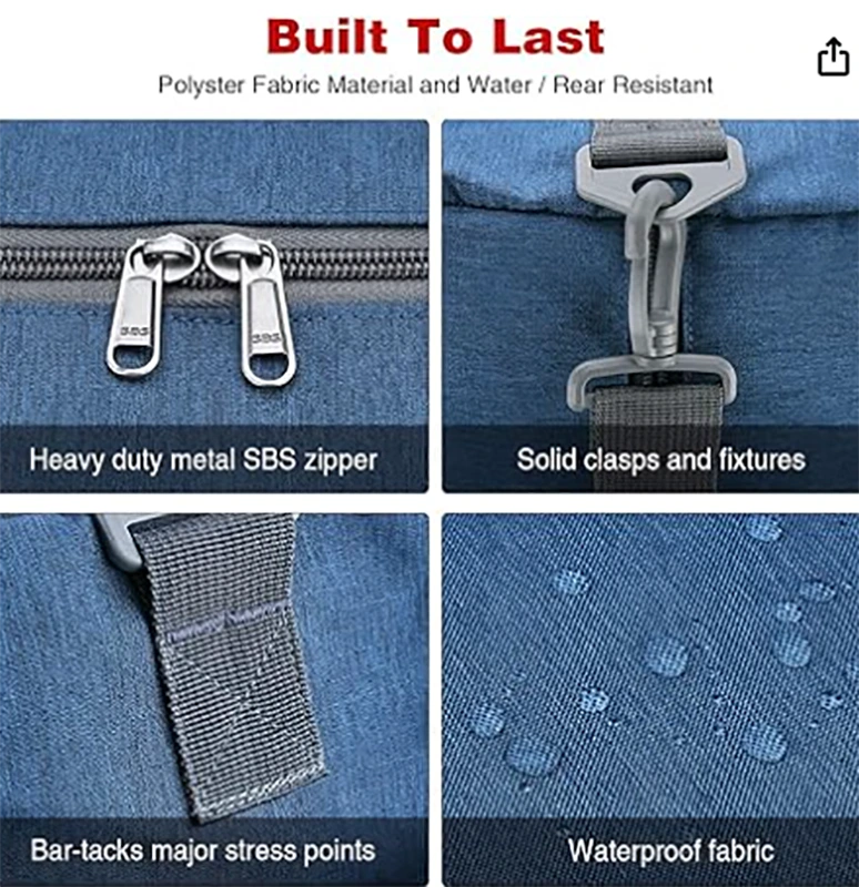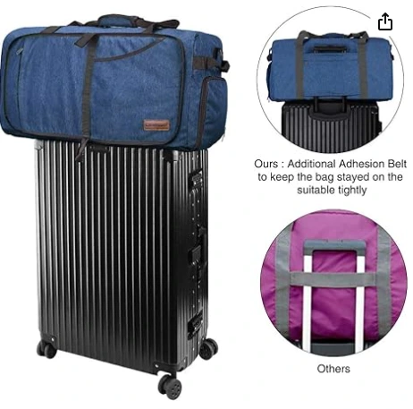 s'estén a 26,3 x 13,7 x 12,2 polzades amb 65 litres de capacitat i 1,74 lliures. Mida plegada: 10,6 x 9,4 x 3,9 polzades, fàcil d'emmagatzemar. Aquesta bossa de lona té un compartiment principal ampli i 6 butxaques separades. Mantingueu les vostres pertinences ben organitzades.