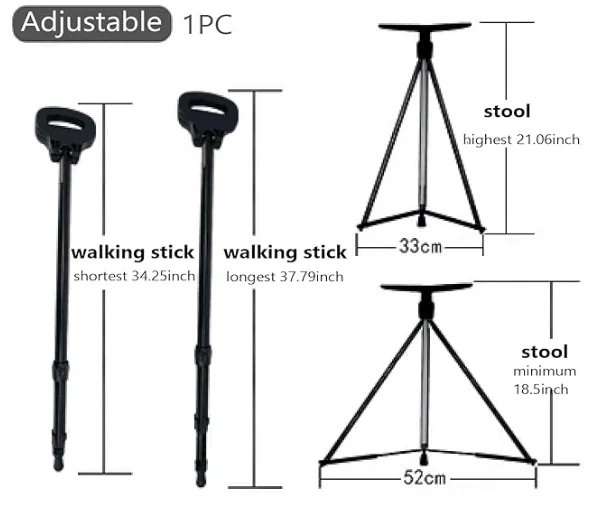 Els pals que caminen per a homes, un pal plegable amb seient són duradors mentre caminen i proporcionen flexibilitat alhora que suporta tot el pes corporal.
