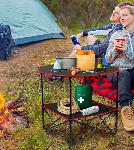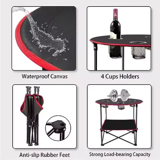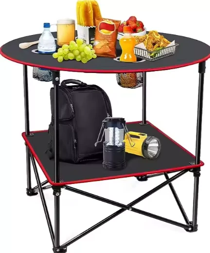 Taula de platja de menjador exterior. La taula de lona quadrada plegable no només es pot utilitzar a l'interior, sinó també per acampar, pescar, fer excursions, platja, picnic, barbacoa, cuina.zhejiang jiayu Outdoor Products Co., Ltd., Mitjà per a un bol de crispetes, patates fregides, immersió o altres aperitius , claus, etc., cosa que facilita el berenar durant les activitats a l'aire lliure. Al nivell superior de la taula, hi ha un altre nivell per a un espai addicional per contenir menjar.
