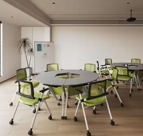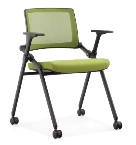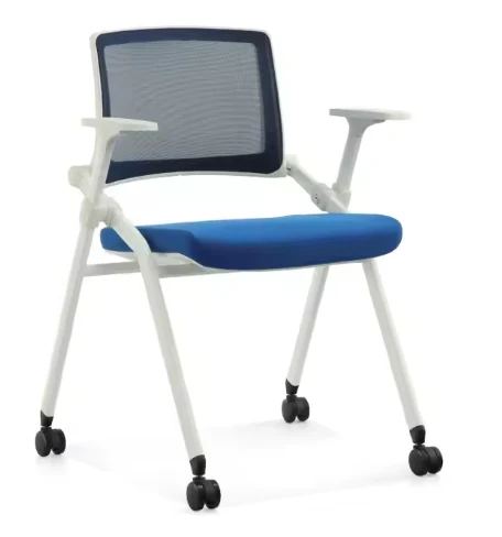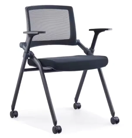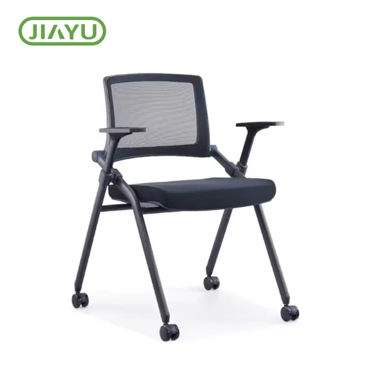 Cadira plegable de metall encoixinat, cadira d’oficina plegable amb rodes PU i malla corredisses corredisses que reboten, cadira de la sala de conferències apilable, convidada d’oficina i recepció i cadira de reunions