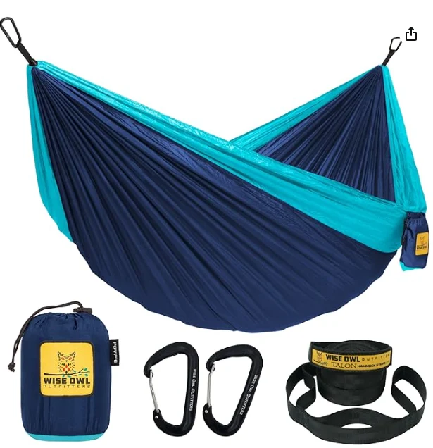 Hamaca de càmping portàtil 3 en 1. Les nostres hamaques lleugeres tenen una varietat de combinacions de colors diferents per coordinar el vostre equip, així com dues mides per adaptar-se a les vostres necessitats. El mussol únic se situa còmodament a una persona i pot aguantar fins a 400 lliures. El doble mussol pot contenir fins a 500 lliures i és perfecte per a dos.Zhejiang Jiayu Outdoor Products Co., Ltd. Quan no està en ús, enrotlleu la vostra hamaca de camps de camps de mussols savis a la bossa d’emmagatzematge adjunta. Quan es desplega, la bossa es duplica com a butxaca per al telèfon, la beguda o altres articles. No és més gran que una albergínia quan es compacta, aquesta hamaca és perfecta per a tot allò en aventures a l'aire lliure.