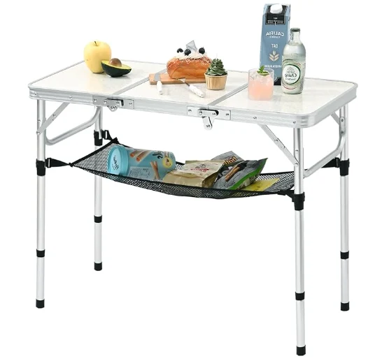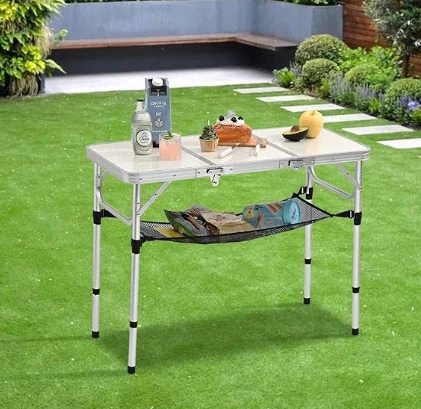 Taula de càmping portàtil d'alumini. Es pot utilitzar com a taula de pati o taula portàtil. Apte per menjar, picnic, pesca, càmping i barbacoa. És prou versàtil per satisfer les vostres necessitats diàries.zhejiang Jiayu Outdoor Products Co., Ltd., inclou una capaç capa de malla d’emmagatzematge a sota de la tauleta per contenir els vostres elements bàsics. Dos S-HOOKS per penjar fàcilment més coses