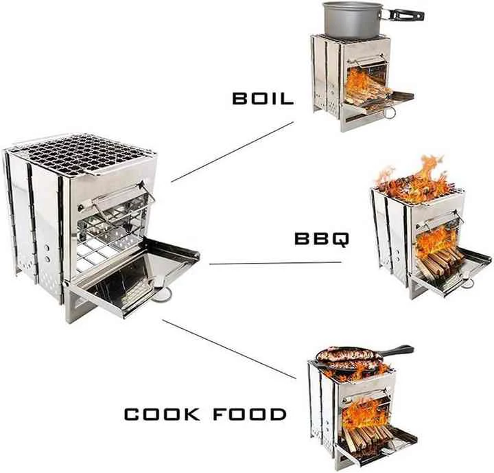 Estufa de mini casset d'acer inoxidable, feta d'acer inoxidable, és possible estendre l'estufa de coets de llenya. És molt convenient seguir endavant.