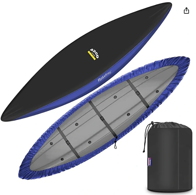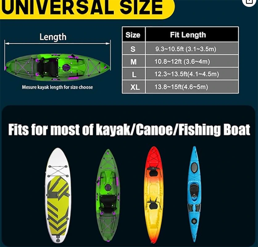 Coberta de caiac impermeable amb disseny de corretja. Cobertes de caiac marins d'alt rendiment, corretja còmoda, resistent a l'aigua, resistent als raigs UV, resistent a la decoloració, a la pols, per a l'emmagatzematge a l'aire lliure.