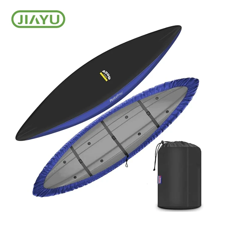 Disseny de corretja Coberta impermeable de caiac Oxford 420D resistent a l'abrasió amb recobriment impermeable de PU i acabat anti-UV recobert interior. Perfecte per suportar l'esquinçament, la decoloració, la humitat i l'esquerda del fred, mantenint el vostre vaixell protegit del clima extrem durant tot l'any. .Zhejiang Jiayu Outdoor Products Co., Ltd La nostra funda de canoa afegeix tres embenats ajustables que poden arribar als 60-100 cm, el que significa que podeu ajustar-los segons les vostres necessitats. es pot utilitzar fàcilment sense cap altra eina i us ofereix un ajustament ajustat.
